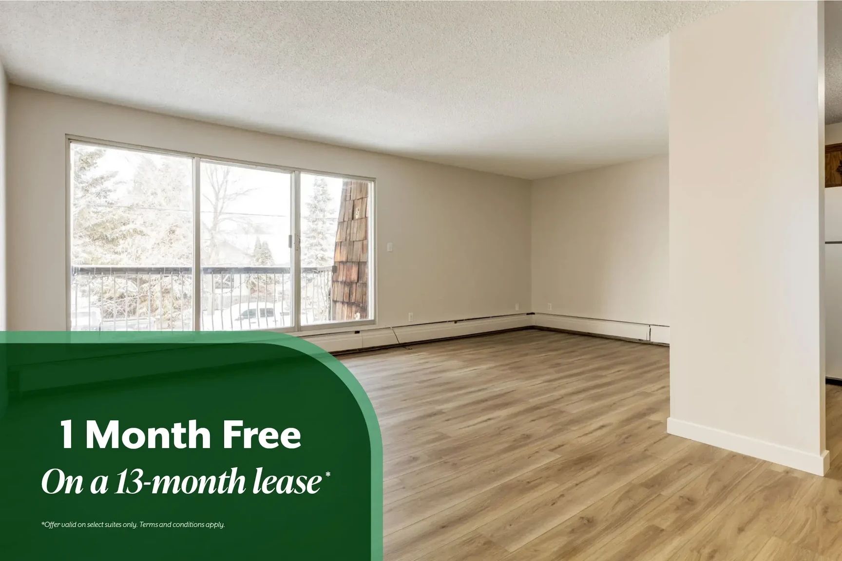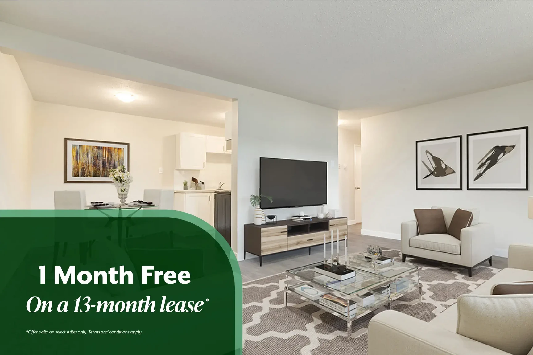 - Get 1 Month Free on a 13-Month Lease! *Offer valid on select suites only. Terms and conditions apply.