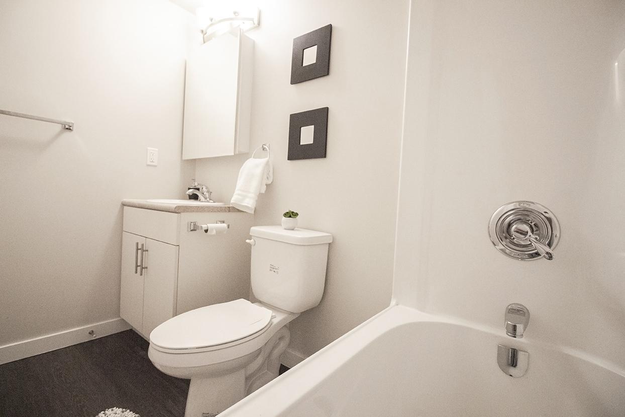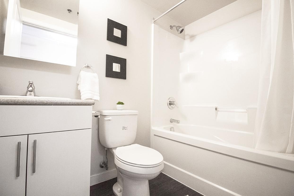 - Standard shower and bathtub